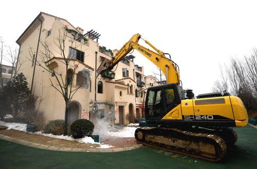 2月19日,大型机械在拆除石家庄某别墅项目。-新华社