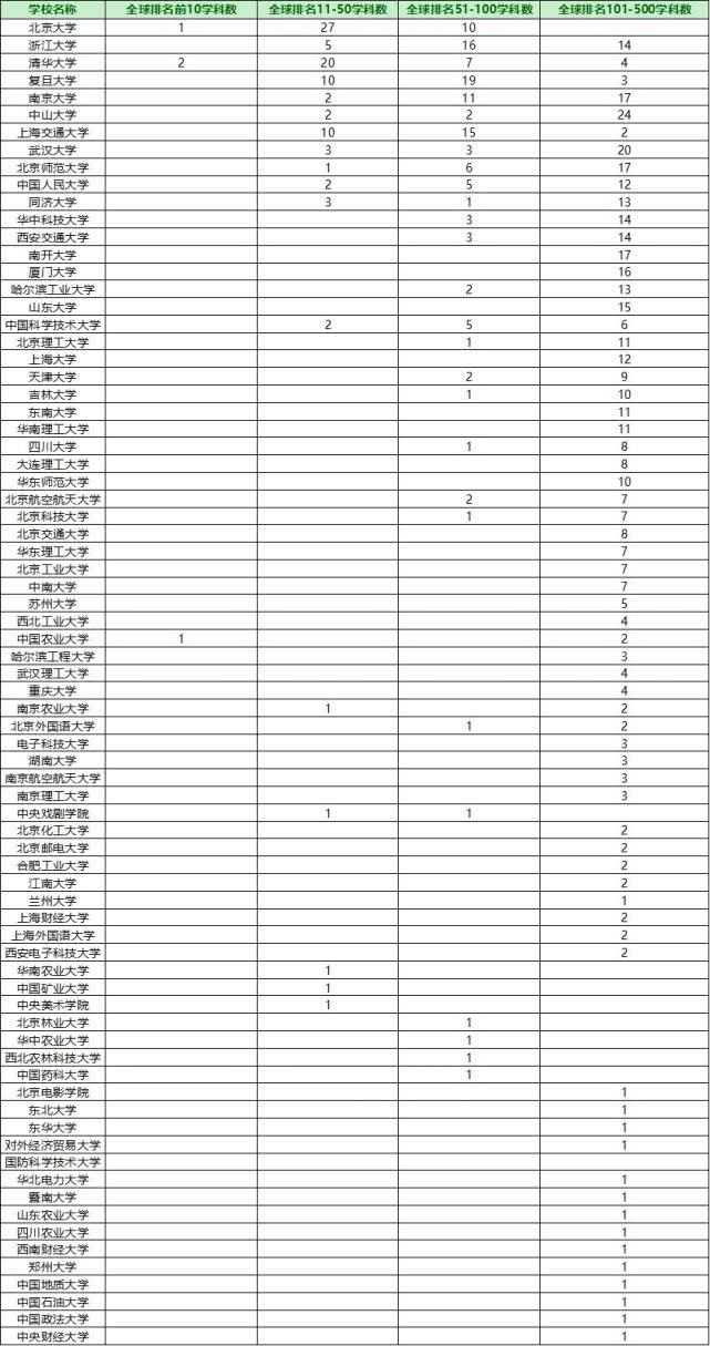 中国高校共402个学科进入世界百强,数量位列世界第三,仅次于美国(1239个)和英国(591个)。其中,中国大陆有32所大学的220个学科进入全球百强。