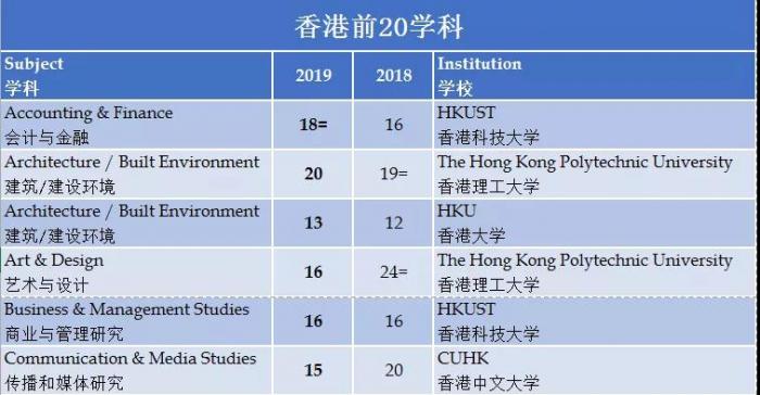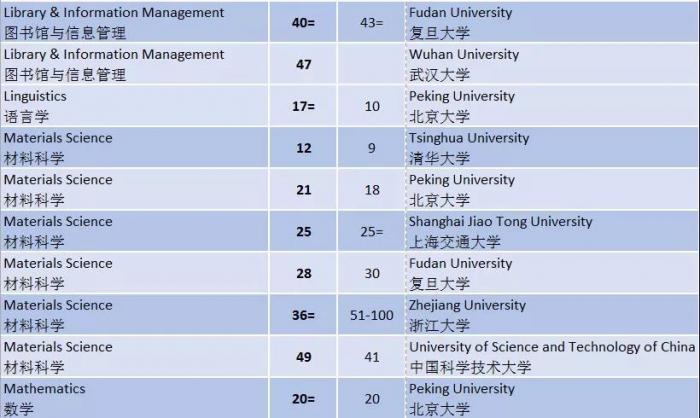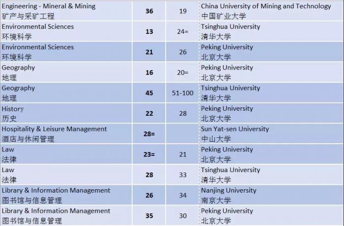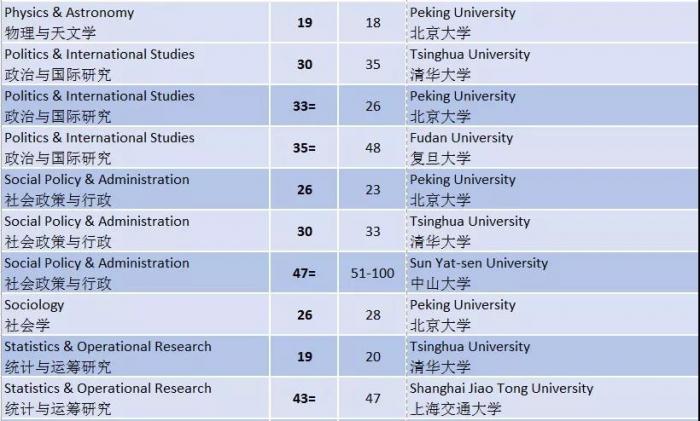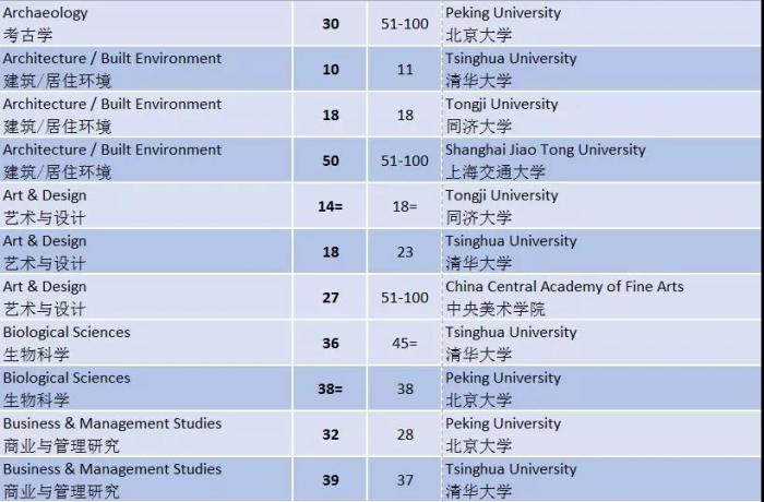 而进入世界前20名的学科,清华大学有12个,北大大学有7个,同济大学有2个(艺术设计第14、建筑第18),台湾大学的运动学也在全球排名第19。
