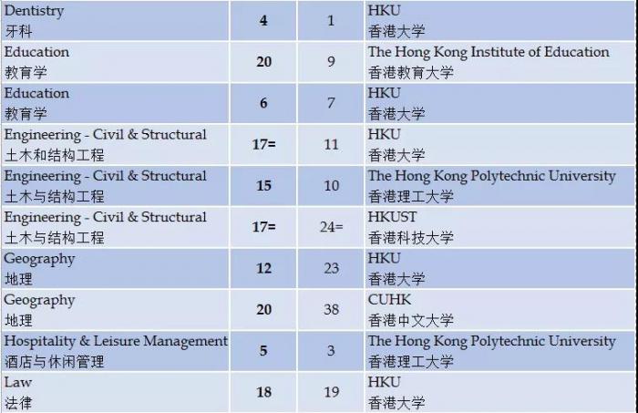 港大牙医学科全球第4,清华土木工程位列全球第9