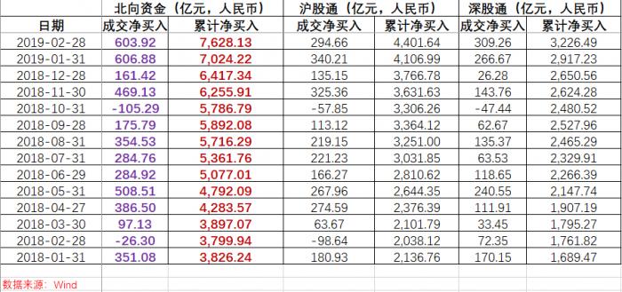 截至2月28日,今年以来,北上资金通过沪股通和深股通,已经持续流入1210.80亿元,其中沪股通今年流入634.87亿元,深股通今年流入575.93亿元。单单2月份就流入了603.92亿元。此外,北向资金累计买入A股的量已增至7628亿元。