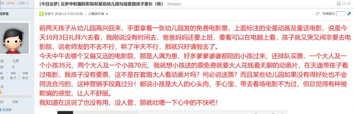 (网络论坛上家长对中影国际城赠票的吐槽)