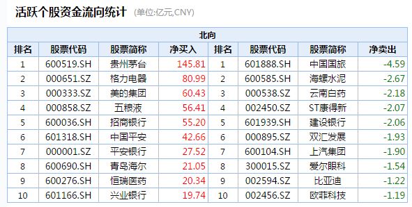 Wind数据显示,无论是以1周、1个月还是3个月、1年为周期,贵州茅台在北向资金净买入的个股中均高居榜首,从未易主。以3个月期限来看,贵州茅台获北向资金145.81亿元净买入,领先第二名格力电器80%。