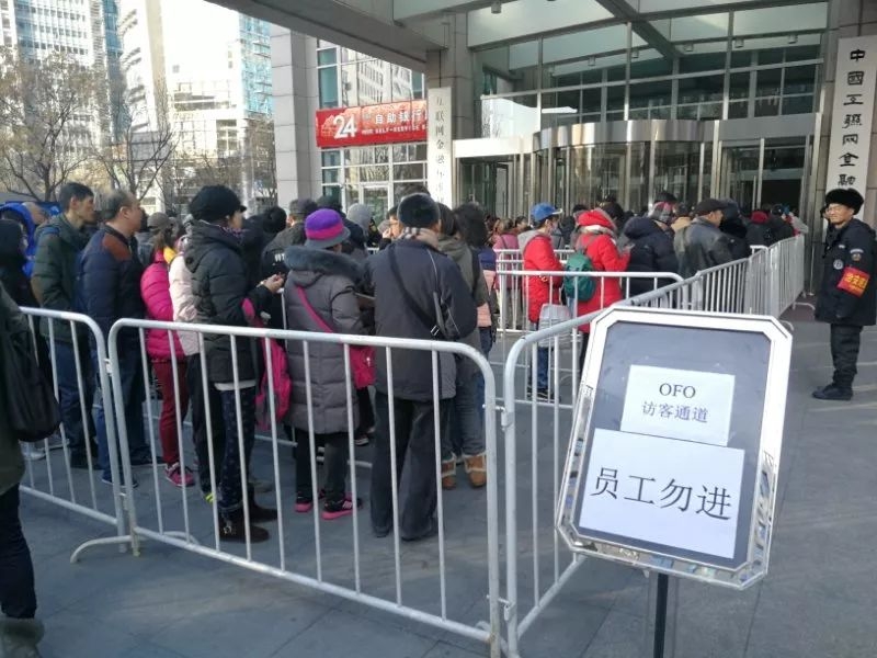 去年12月份,在ofo公司楼下排队等候退押金的用户。