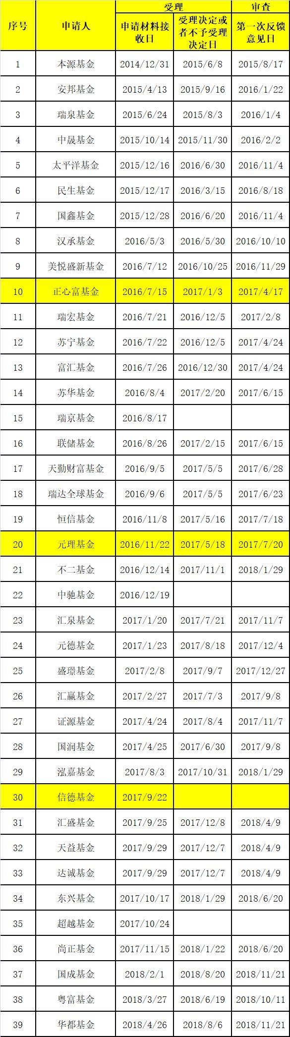 目前排队候批的39家拟成立公募基金管理人列表