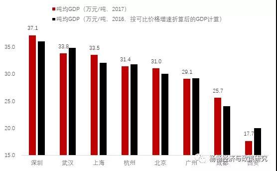 注:根据2017年名义GDP数据和可比价格增速,折算2016年GDP数据,进而计算2016年的吨均GDP。