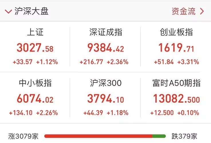 3月4日,A股三大股指集体高开,沪指轻松拿下3000点大关,创8个月来新高,盘中沪指一度涨逾3%,创业板指更是大涨逾5%,市场各大热点全线开火,不过临近尾盘,三大股指集体回调,涨幅缩窄,截至收盘沪指收涨1.12%,深成指收涨2.36%,创业板指收涨3.31%。