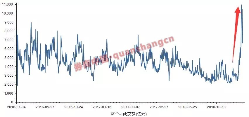 在A股市场连续上涨之下,市场情绪已被彻底点燃,成交量指标更具意义。