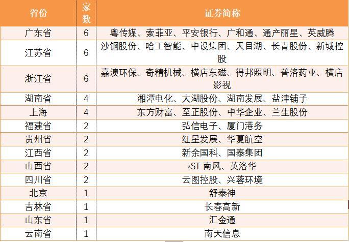 本周共有来自14个省份的上市公司披露年报。其中广东、江苏、浙江并列第一,各有6家。