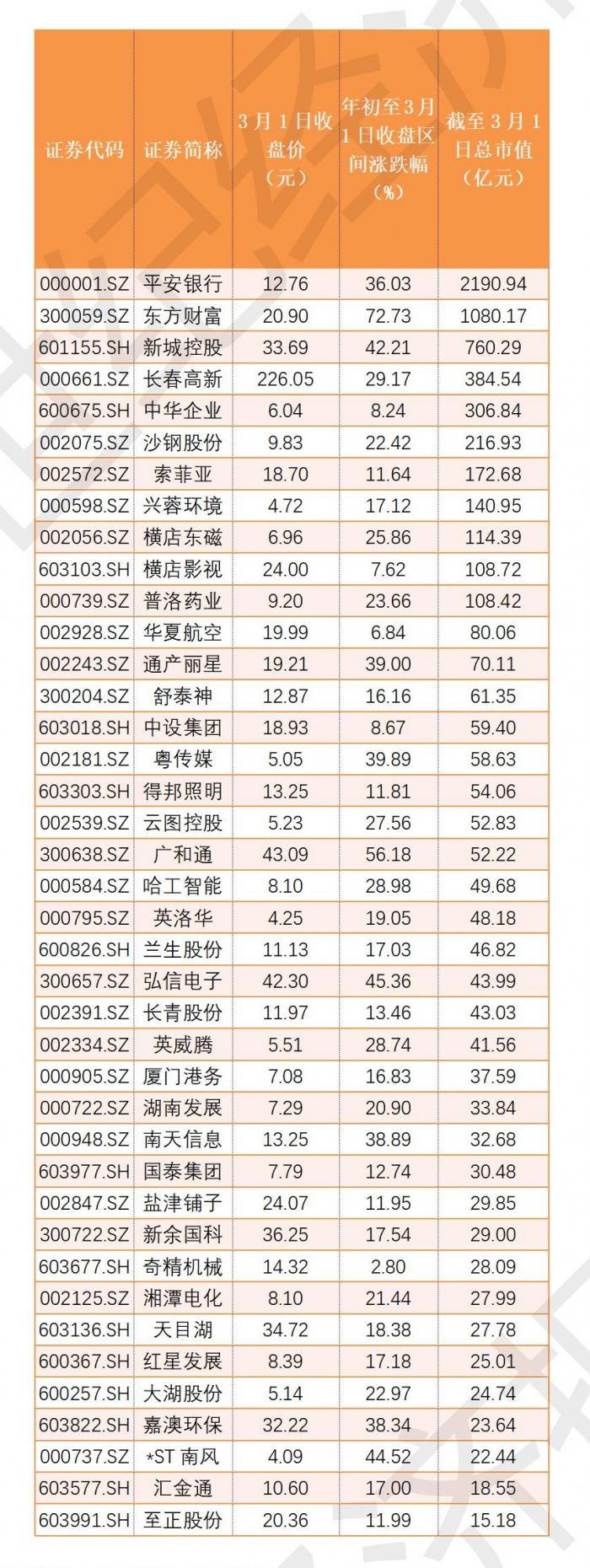 至正股份市值最小,截至3月1日收盘市值为15.18亿元。