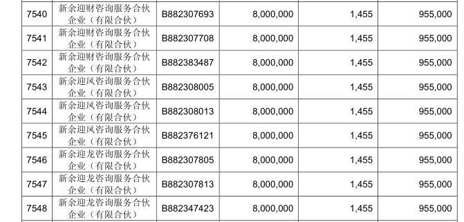 譬如,新余迎财咨询服务合伙企业(有限合伙),该公司大股东为叶舒,旗下还有新余迎凤咨询服务合伙企业(有限合伙)、新余迎龙咨询服务合伙企业(有限合伙)两家公司,3家公司的9个账户均初步获配1456手,每个账户亦均顶格申购80亿元。