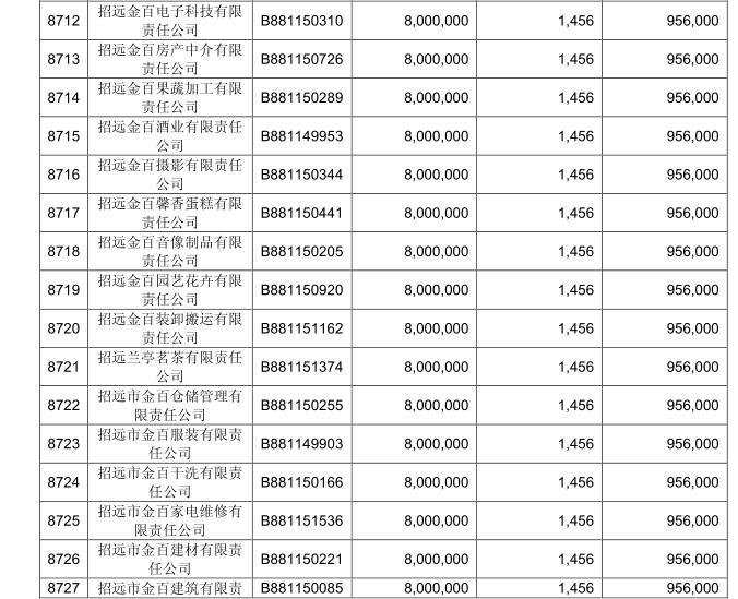 本报记者查阅工商资料发现,招远金百电子科技有限责任公司、招远金百房产中介有限责任公司、招远金百果蔬加工有限责任公司等多家公司的注册资本仅1万元。而在此次中信转债的打新中,20多家公司均顶格申购80亿元,最终获配1456手。