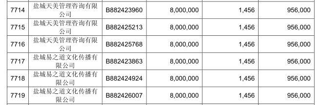 还有王学贵实控的盐城易之道文化传播有限公司和盐城天美管理咨询有限公司等,两家公司共6个账户获配,每个1456手。