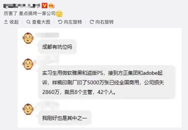 昨天,微博上传出了这样的爆料:某公司实习生用了微软雅黑字体,印刷了5000万张样稿,结果被起诉,公司赔了几千万,裁员数十人。