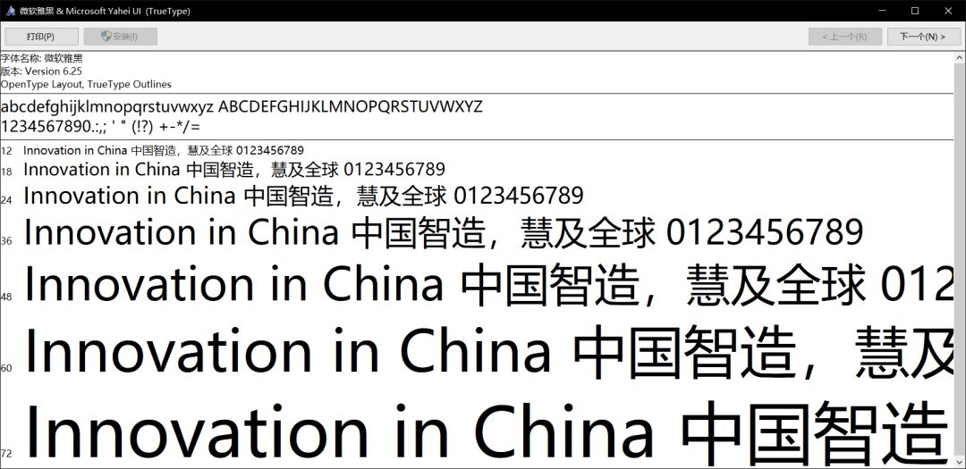 windows系统中的“微软雅黑”字体属性“详细信息”