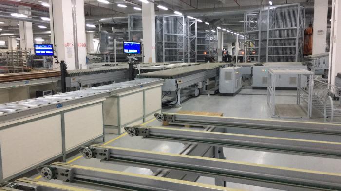 目前,欧派共拥有清远、天津、无锡、成都(建设中)四大生产基地,8条生产线。据悉,未来欧派在自动化生产方面的投入有望超过亿元。“去年仅针对示范生产线的自动化实验和升级,我们就总共投入了5000万,成功后会推广到全国的其他生产线。”刘忠会告诉记者,自动化分拣线已经在无锡工厂上线投产,目前公司正在进一步观察和改进设备的运行情况。