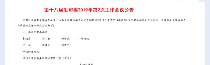 十八届发审委首秀,四川天味将接受审核!多名铁面委员在列!