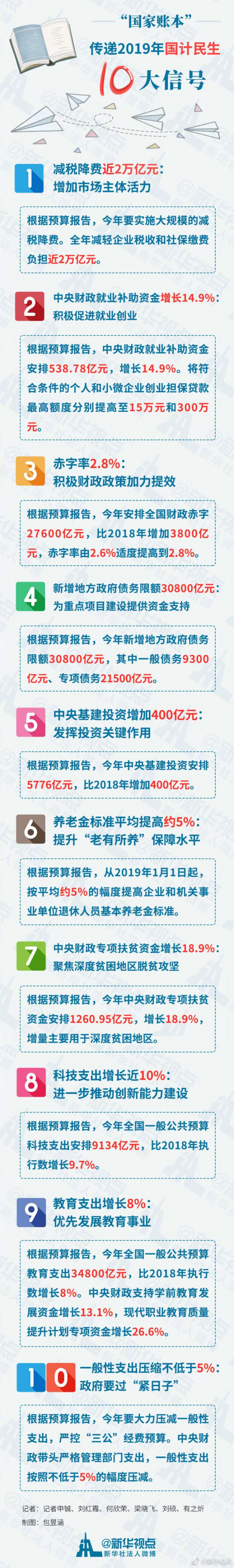 3月5日,十三届全国人大二次会议开始审查预算报告。这份厚厚的“国家账本”传递出哪些关乎国计民生的重要信号?