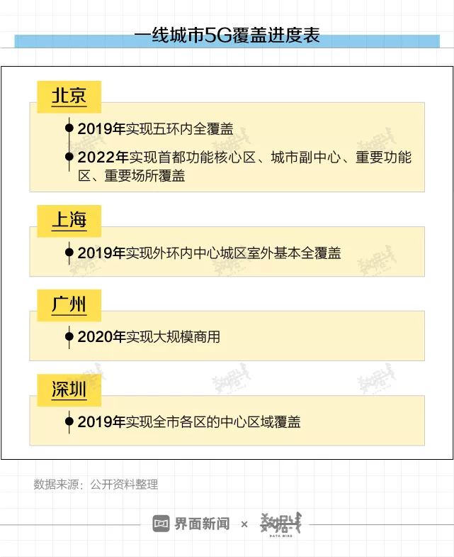 其中,一线城市作为5G覆盖的“排头兵”,都计划在2019年实现城市中心区域覆盖。