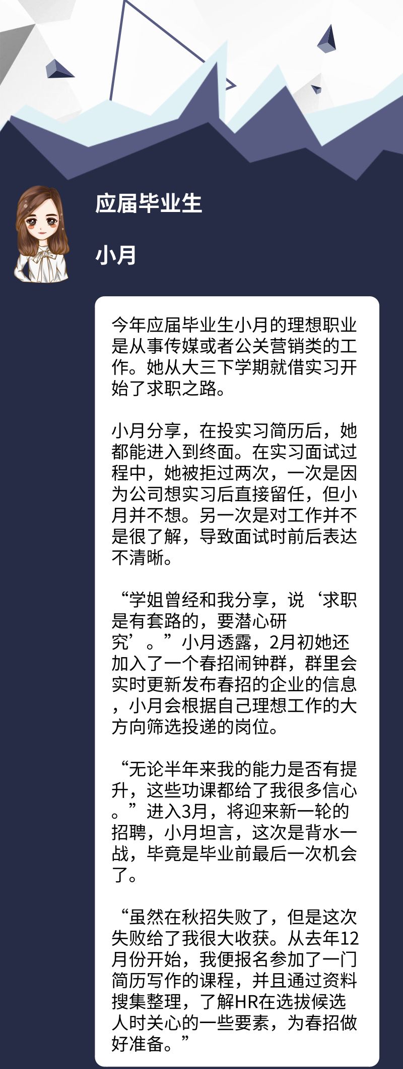 尽管小月在年后为求职铆足了劲,做好了充足准备,但应届毕业生并不是春季求职市场最积极的人。