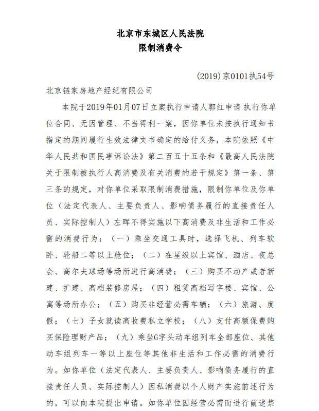 北京市东城区人民法院近日公布了一条针对链家董事长左晖的限制消费令,这一事件引来网友围观,甚至登上昨天(8日)的微博热搜。