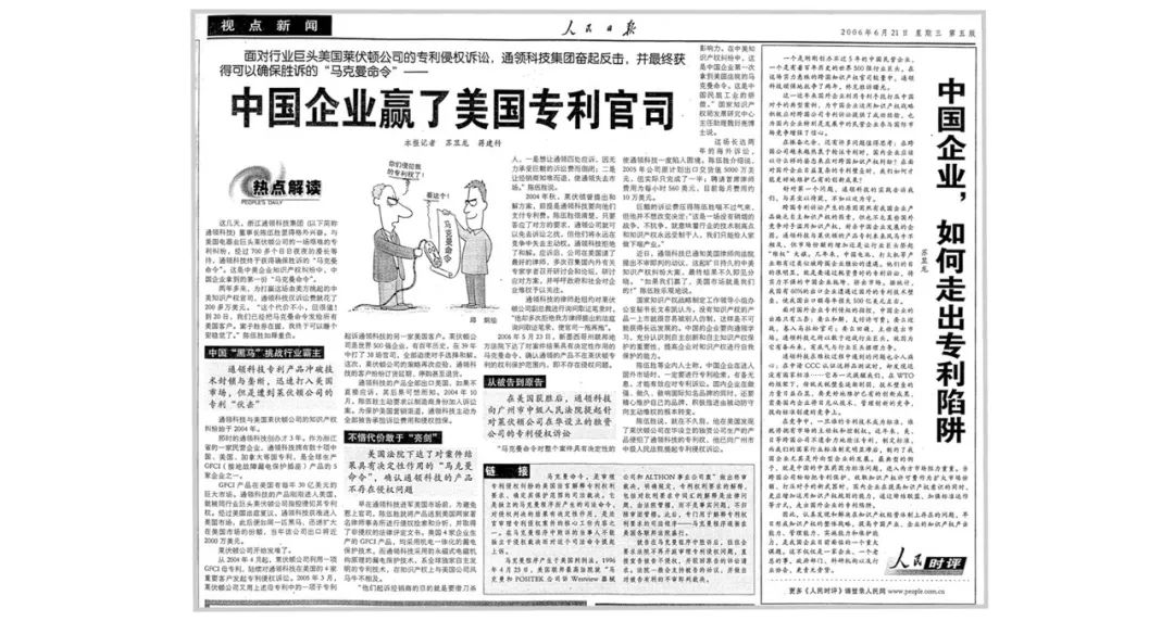 经过2年多的艰苦诉讼,通领科技花费1.6亿元最终打赢了所有官司。2006年5月23日,美国法院下达了长达33页的“马克曼命令”,明确表明通领科技的产品没有侵犯莱伏顿公司的专利。