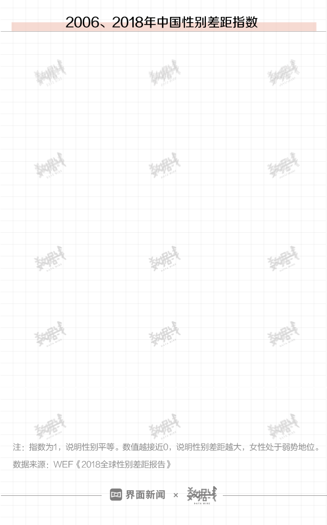与2006年相比,中国性别差距指数提高了0.017,但全球排名从63/115降至103/149。
