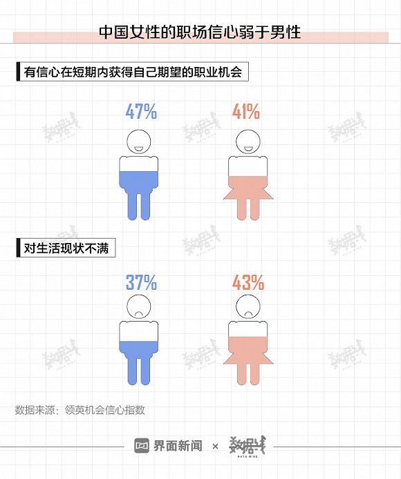 近期发布的领英机会信心指数(LinkedIn Opportunity Index)数据同样显示,女性对于获得职业机会的信心普遍弱于男性,对现状不满的比例则高于男性。