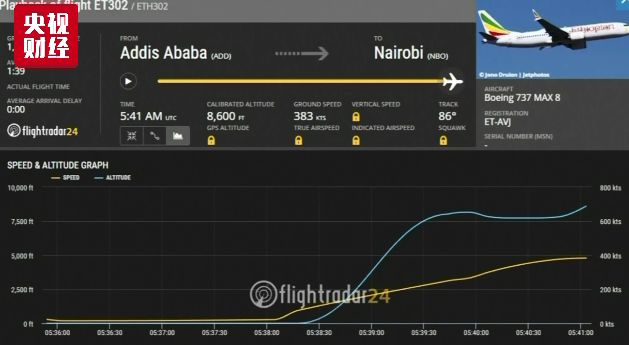 埃塞俄比亚航空公司当天发表声明说,失事的ET302航班客机机型为波音737,于当地时间8点38分从埃塞首都亚的斯亚贝巴起飞,计划飞往肯尼亚首都内罗毕。