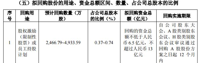 3、准备花多少钱回购?不低于人民币6.5亿元,不超过人民币13亿元