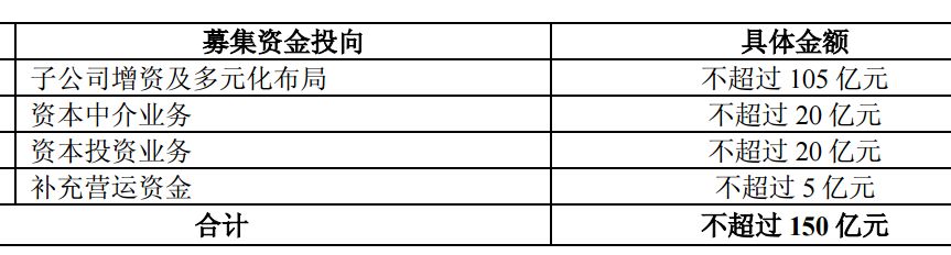本次配股募集资金总额不超过人民币 150 亿元(具体规模视发行时市场情况而 定),扣除发行费用后的募集资金净额拟全部用于子公司增资及多元化布局、资本 中介业务、资本投资业务、补充营运资金,具体情况为: