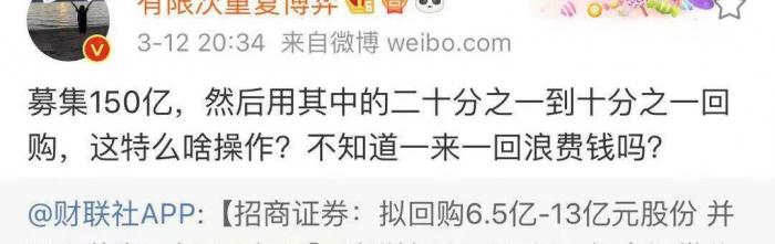 股民戏称,这操作太6了,左手回购6.5亿元至13亿元,右手配股融资150亿元。简单翻译一下就是:股东自己掏钱让上市公司回购股票。