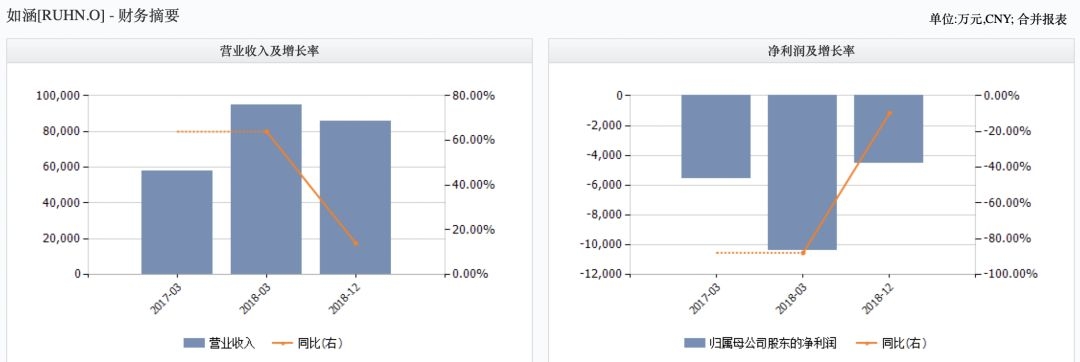 招股书同时显示,如涵2017财年、2018财年净亏损分别为4014万元、8995万元;2019财年前九个月净亏损5750万元,相比上年同期净亏损2613万元仍在持续扩大。