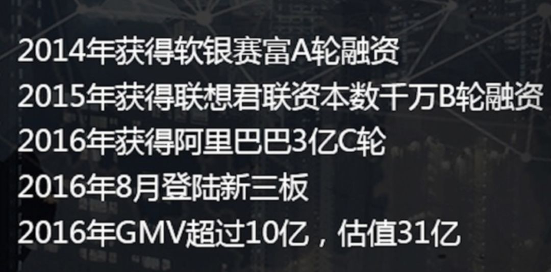如涵控股官网显示,自2014年获得软银赛富A轮融资后,接连在2015年获得联想君联资本数千万B轮融资、2016年阿里巴巴3亿元C轮融资。在2016年,如涵GMV超过10亿,估值31亿。此外,2015年7月如涵就通过借壳克里爱在新三板挂牌,至2018年4月摘牌。