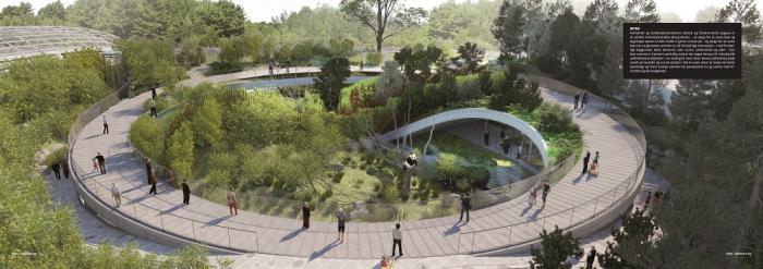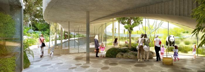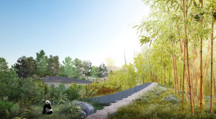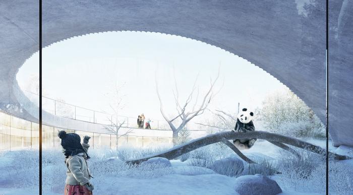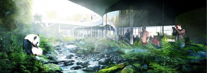 坐落于哥本哈根动物园的全新熊猫馆受中国“阴阳”理念的启发,由丹麦著名BIG 建筑师事务所(Bjarke Ingels Group)设计完成。场馆设计可容雄性和雌性大熊猫在一年大部分时间内在临近的居所分开居住,在雌性发情期期间则可以轻松迁移至公共区域。