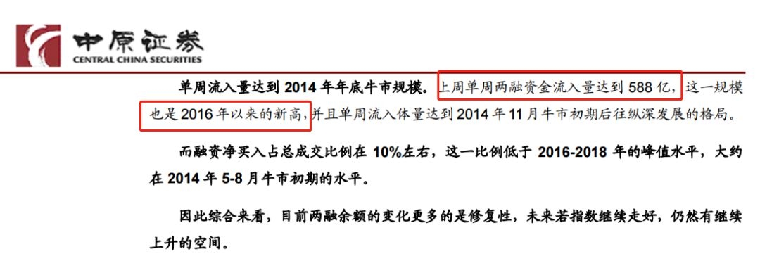 根据中原证券统计,上周单周两融资金流入量达588亿元,达到了2014年底牛市水平,也创了2016年以来单周新高。