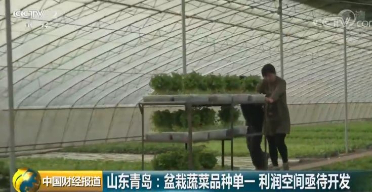 山东青岛某农业公司负责人 李配:一盆菜大概能产出一斤到一斤二两,冬天四五块钱一斤。一年四季都是这个价格,15到18元一盆。一个棚占地一亩半,年纯收入在10万元左右。