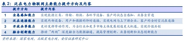 国家电网公司明确,泛在物联网将在电网现有的业务基础上,从全息感知、泛在连接、开放共享、融合创新四个方面对公司的综合能力进行提升,进而支撑“三型两网、世界一流”发 展战略目标。