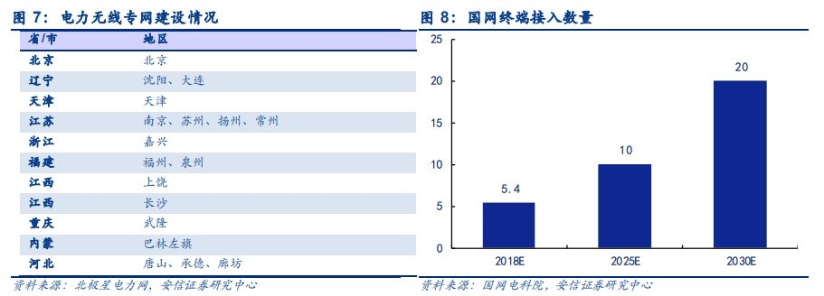 从 2009 年研发 LTE 电力无线专网开始,国网公司就已经开始了在泛在电力物联网相关领域 的探索。目前,已经有 11 个省市公司建设了一定规模的电力无线专网,接入了 22 类业务。 到 2018 年底,国网接入的终端设备超过 5.4 亿只,采集数据日增量超过 60TB,覆盖用户 4.5 亿户。按照国家电网公司规划,预计到 2025 年接入终端设备将超过 10 亿只,到 2030 年将超过 20 亿只。