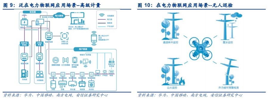 两步走战略,2024 年全面建成泛在电力物联网。国网计划到 2021 年初步建成泛在电力物联网,实现业务协同和数据贯通,初步实现统一物联管理,支撑电网业务与新兴业务发展。到 2024 年建成泛在电力物联网,全面实现业务协同、数据贯通和统一物联管理,全面形成共 建共治共享的能源互联网生态圈。