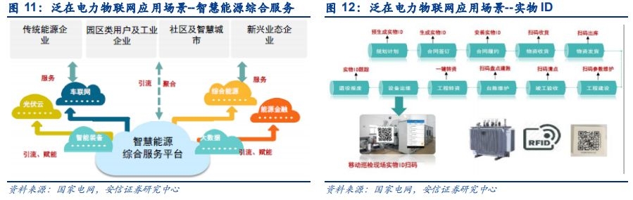 在新兴领域,泛在电力物联网将在统一感知、实物 ID 应用、精准主动抢修、虚拟电厂、智 慧能源服务一站式办理、大数据应用等领域,为电网企业和新兴业务主体赋能。以综合能源服务平台为例,对于可以应用入口将能效服务共享平台、省级客户侧用能服务平台、新能源 大数据平台、车联网、光伏云网、智慧能源控制等系统,发挥规模化集聚效应;对外则可为各类新兴业务主体统一提供并网、监控、计量、计费、交易、运维等平台化共享服务。