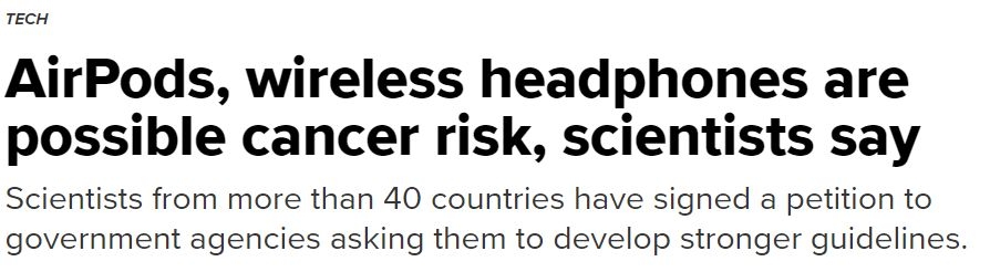 然而问题就在这里。实际上,这封联名信并没有提到AirPods,甚至没有提到无线耳机。确切来说,联名信是针对“非电离电磁场技术”的潜在健康风险表达“严重担忧(serious concern)”,而所有蓝牙设备都使用这种技术。