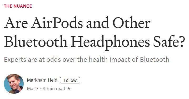 3月7日,国外网站Medium发布了一篇标题为《AirPods和其他蓝牙耳机安全吗?》的文章,其中引述了科罗拉多大学科罗拉多泉分校(UCCS)生物化学教授杰瑞·菲利普斯(Jerry Phillips)的说法。