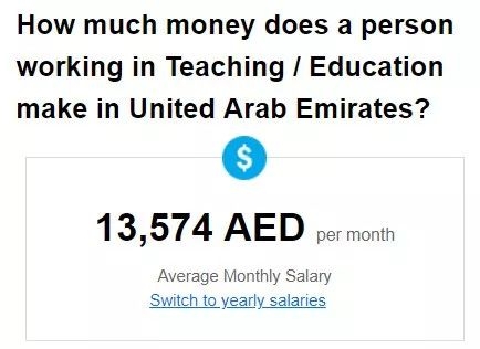 别急,具体到教育行业,在阿联酋“当老师”的平均月薪其实整体稍低,为13574迪拉姆。