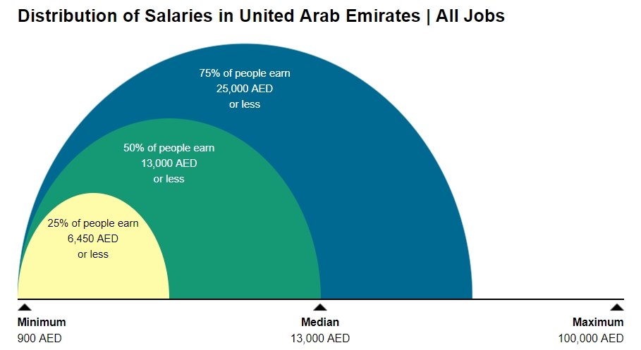 该网站的数据还显示,目前阿联酋有一半人的月薪在13000迪拉姆以下。