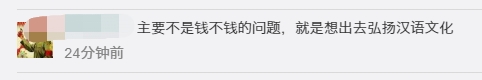 不过即便如此,还是有很多网友说:钱不是问题,就是想出去弘扬汉语文化!