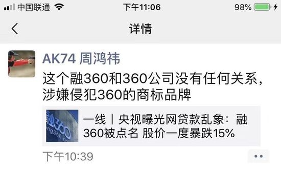 随后,360集团董事长周鸿祎回应称,这个融360和360公司没有任何关系,涉嫌侵犯360的商标品牌。