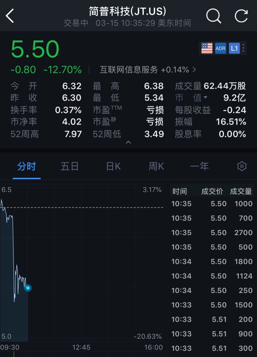 被央视曝光后,在美国纽交所上市的融360旗下公司简普科技(JT.NYSE)股价应声而下,一度跌超15%。