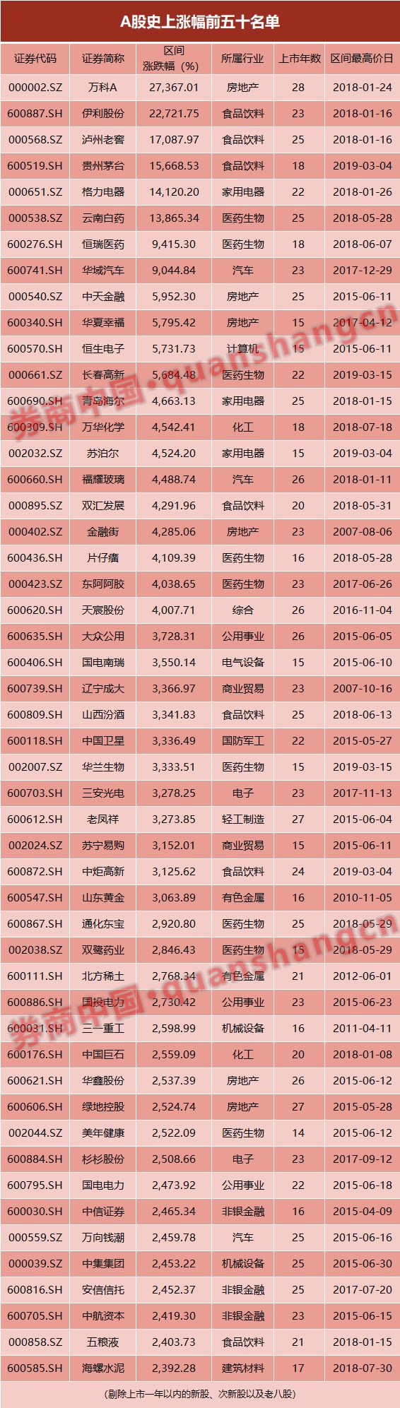 那么,我们来看看A股史上真正的牛股都是哪些?
