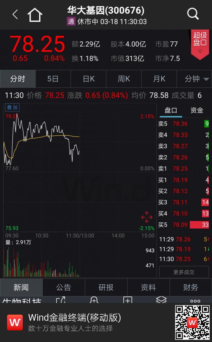 3月18日早盘,华大基因股票大幅高开,但随后涨幅略有收窄,截至早间收盘时涨逾0.84%。